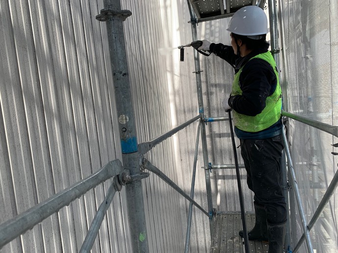 塗装前の高圧洗浄を行っております。