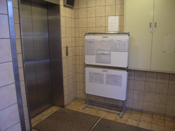 連日本格的な寒さが続いておりますが、南面の外壁防水改修工事の着工時期が近づいて参りましたので、『工事用掲示板』を1階エントランスホール内(エレベーター昇降口前)に設置しました。工事に関するお知らせ等、適宜掲示いたしますので、ご確認方よろしくお願いします。