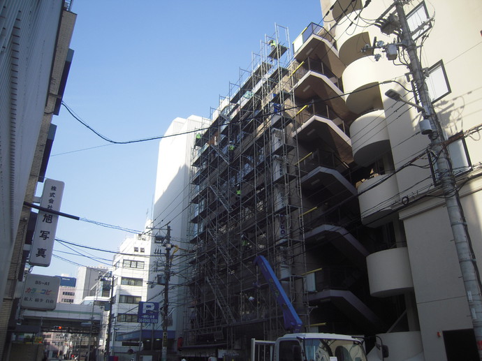 1/20、21の土曜・日曜で一般外壁面の足場の組立を行いました。