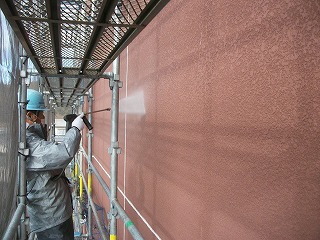 先日、5号館の外壁塗装工事が終了いたしました。最後の棟になります2号館も下地補修工事、シーリング工事が終わり外壁の高圧洗浄を行っているところです。外壁塗装工事が終わりますと5号館、2号館の屋上や庇等の防水工事へと進んでいきます。朝は霜が降りるような厳しい寒さが続き防水工事の進み具合にも影響が出そうで心配しております。