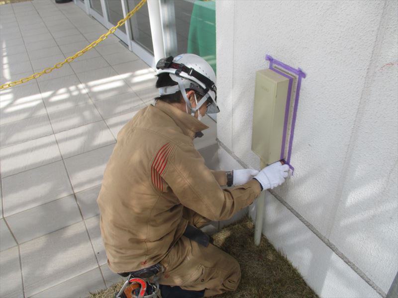 今回も外壁と設備機器の取合い、屋内配管など作業スペースが小さく、種々複雑な場所をしっかりと確認をとりながら作業を進めてくれています。