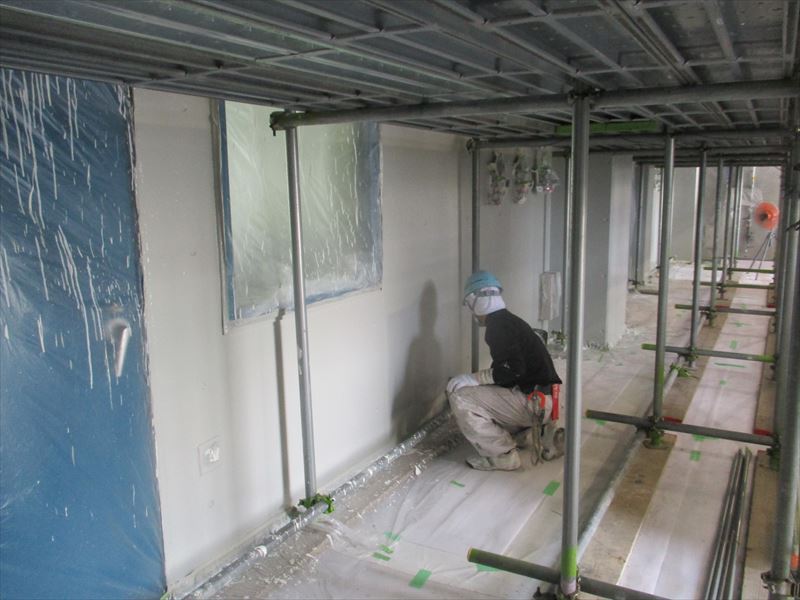 写真は養生バラシ前の仕上げを行っているところです。