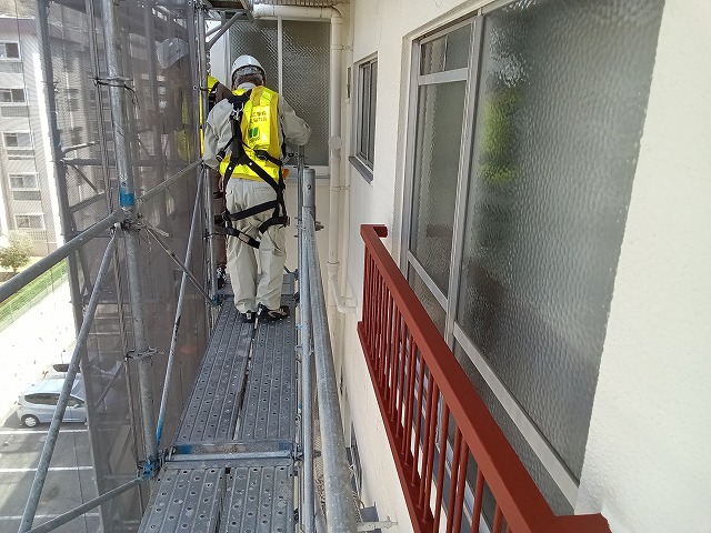 01 工事開始 2025年3月14日 いよいよ大規模修繕工事が始まりました。現在足場仮設を行っていますが順調に作業は進んでいます。工事が進むにつれてお洗濯物が干せない日が徐々に増えていきます。入居者様へご迷惑をお掛けすることもあるかもしれませんが、安全第一で工事を行いますので何卒、ご理解・ご協力の程、宜しくお願い致します。