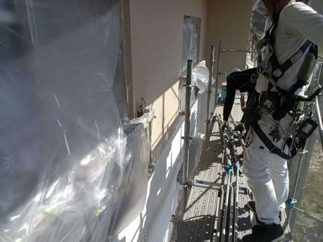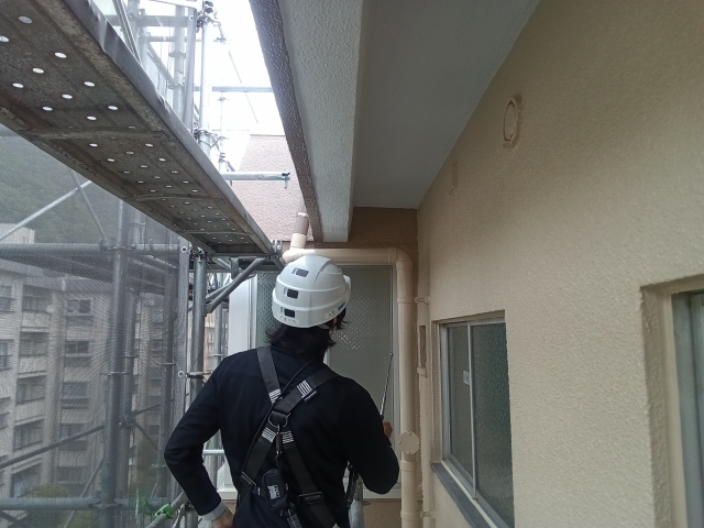 08 防水工事 施工中 2025年6月04日 5月に投稿した防水工事ですが、現在サービスバルコニー内部を施工しています。洗濯機を吊り上げ施工していますので期間中、お洗濯が出来ずにご迷惑をお掛けしています。しっかり防水をして安心していただけるように工事をして参りますのでもうしばらく宜しくお願い致します。