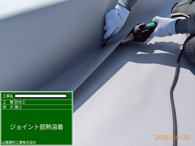 11 屋上防水 2025年7月04日 梅雨が明けて、猛暑が続いております。過酷な暑さの中、職人さん達は真っ黒に日焼けしながら作業をしてくれています。現在屋上の防水作業を行っております。熱中症に注意しながら工事が無事完了するまで頑張ります。