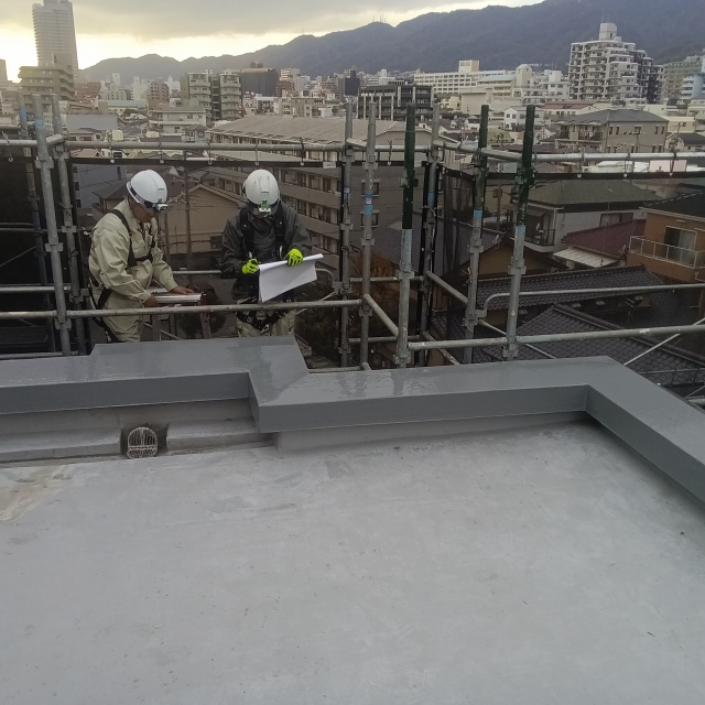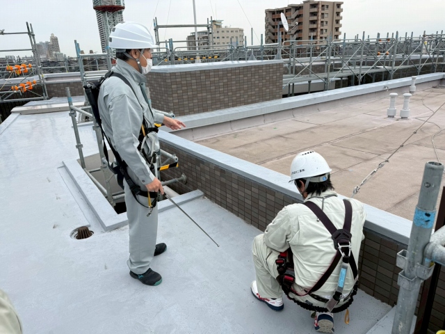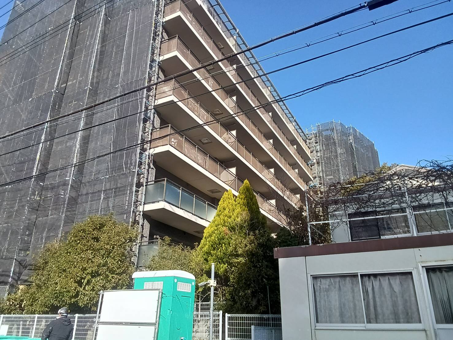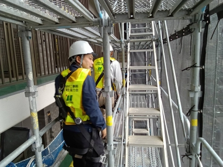工事着工から3カ月が過ぎようとしています。直前に迫っている足場解体前に検査を実施しております。入居者の皆様には工事にご理解・ご協力いただき感謝いたします。最後まで安全第一で作業を行って参りますのでもうしばらくご辛抱下さい。