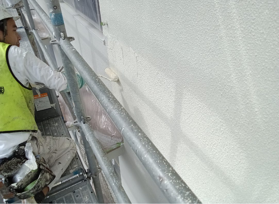 現在バルコニー面は塗装工事を実施、来週は防水工事を実施します。