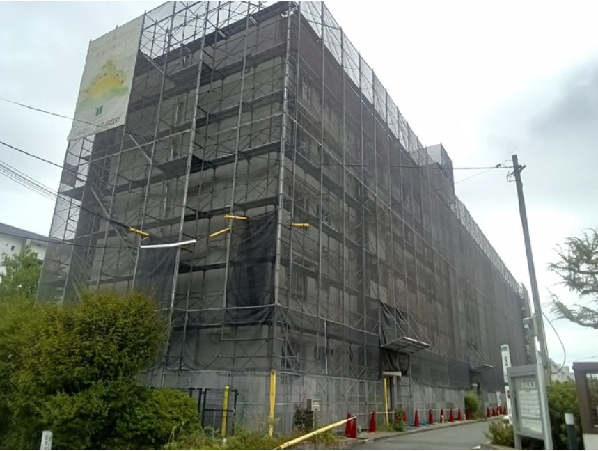 1 大規模修繕工事着工いたしました。 2025年9月5日 大規模修繕工事が着工されました。まずは共通仮設(事務所・掲示板など)を進めています。安全第一で工事を進めますので宜しくお願い致します