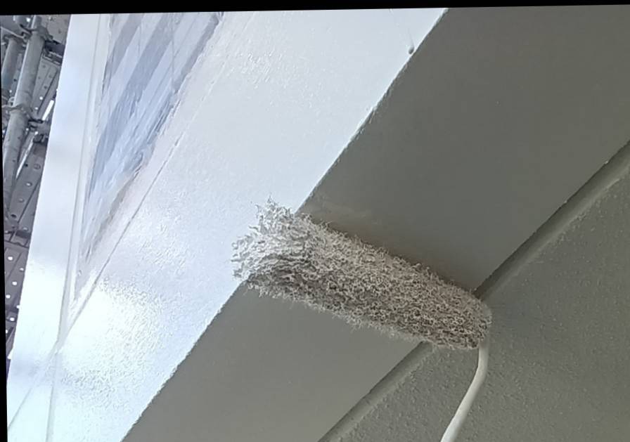 先日より始まりました塗装工事は、東面の作業を終え、現在は南面の塗装に取りかかっております。